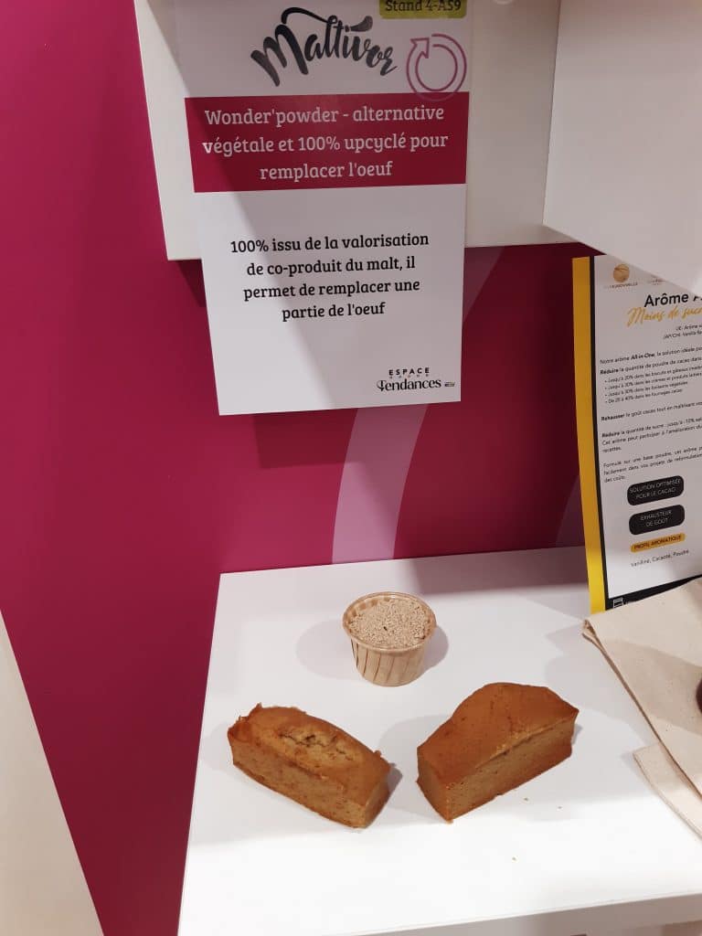 Maltivor (Lyon) propose des farines de drêche de brasserie. Leur Wonder’powder promet ainsi de remplacer une partie de l’œuf dans les préparations de pâtisserie.